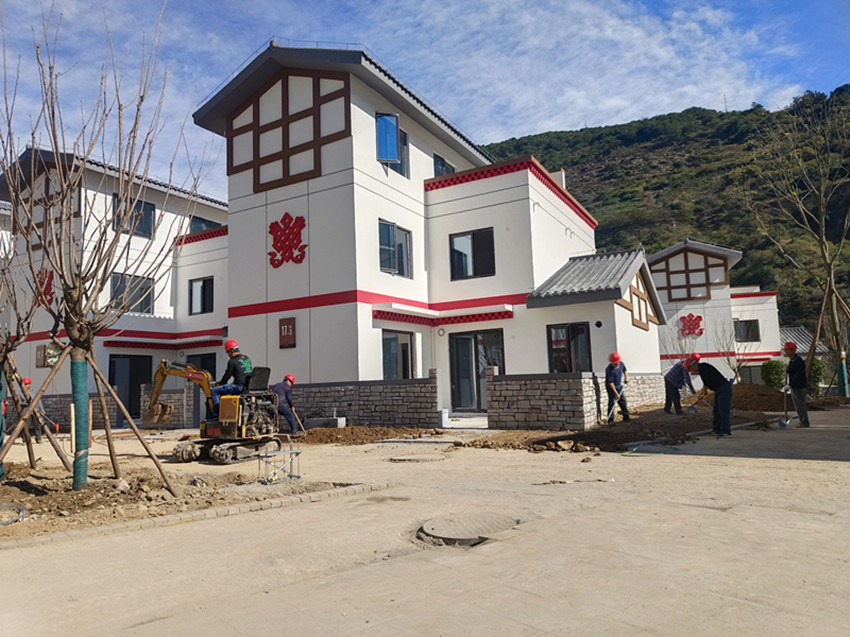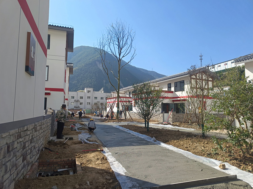 11月5日,記者走進瀘定縣德威鎮(zhèn)奎武村“9·5”瀘定地震災(zāi)后重建集中安置點,只見一幢幢繪有“如意結(jié)”和穿斗裝飾等瀘定傳統(tǒng)建筑元素以及“瀘定紅”“紅飄帶”等民族特色的安置房沿大渡河畔依次排開,一條條寬敞平整的水泥硬化道路將這些風(fēng)貌一致、戶型合理、結(jié)構(gòu)安全的安置房屋串聯(lián)起來。幾十名工人正在安置點內(nèi)忙碌,有的在鋪設(shè)路面、有的在栽種綠化樹、有的在搬運廢渣……,拿到鑰匙的部分村民正在進行室內(nèi)裝修,現(xiàn)場一派繁忙景象。