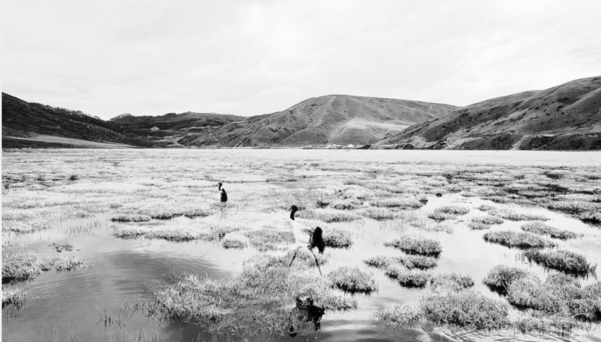 德格縣馬尼干戈鎮(zhèn)的珠姆省級(jí)濕地公園,水面映照著藍(lán)天白云,野花和綠草隨風(fēng)輕曳,處處洋溢著生機(jī)。閑庭信步的兩只黑頸鶴,成為這里的別樣風(fēng)景。 益西巴絨 攝