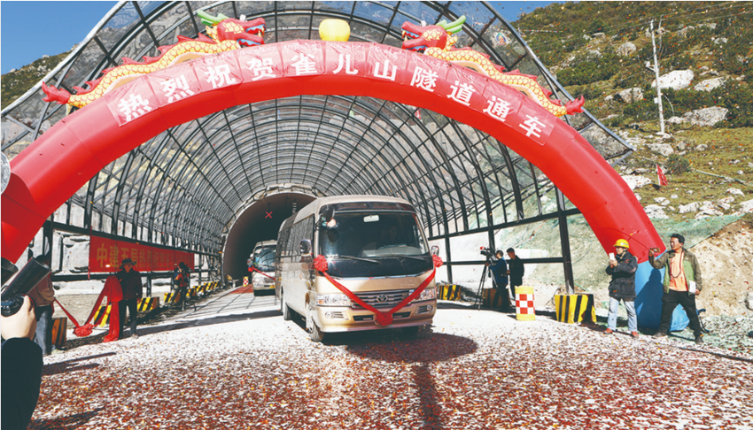 國(guó)道317線(xiàn)雀兒山隧道通車(chē)典禮。本報(bào)資料庫(kù)圖