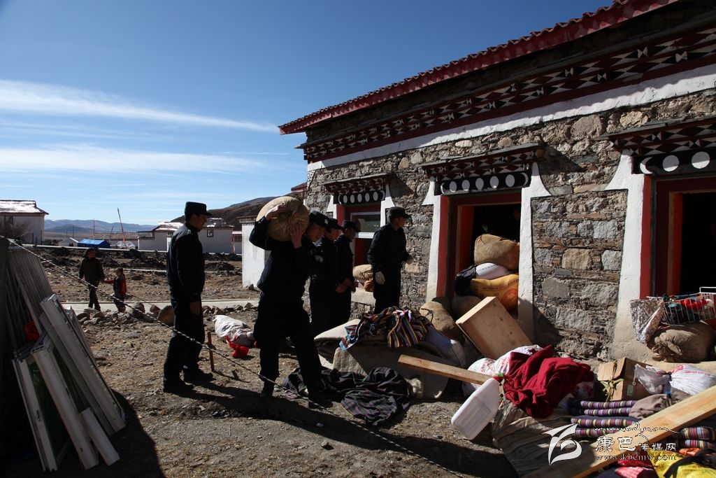 26日一大早,記者驅(qū)車趕往塔公江巴村采訪,在江巴村一戶受災(zāi)群眾家院壩內(nèi),看到了一群熟悉的聲影,他們正在幫村民巴扎轉(zhuǎn)移糧食。村民巴扎家堆放糧食的房屋外墻受地震影響裂開了幾到明顯的口子,磚瓦散落一地。主人家非常擔(dān)心房子垮了將糧食掩埋,這是他辛苦了一年的勞動(dòng)成果,更是一家人過冬的口糧,正當(dāng)巴扎心焦如何將這兩千余斤糧食如何轉(zhuǎn)移到安全地帶時(shí),他們出現(xiàn)了。當(dāng)他們了解到巴扎想盡快把糧食和其他物品轉(zhuǎn)移到安全地點(diǎn)時(shí),他們二話不說,簡單分工后,馬上就忙開了。他們扛的扛、拉的拉、背的背、抬的抬……很快就將糧食以及其他零散物品轉(zhuǎn)移到巴扎家的安全地帶??吹竭@一切,一旁的巴扎對(duì)他們翹起了大拇指用很不流利的漢語說到:實(shí)在太感謝你們了,卡卓、卡卓……