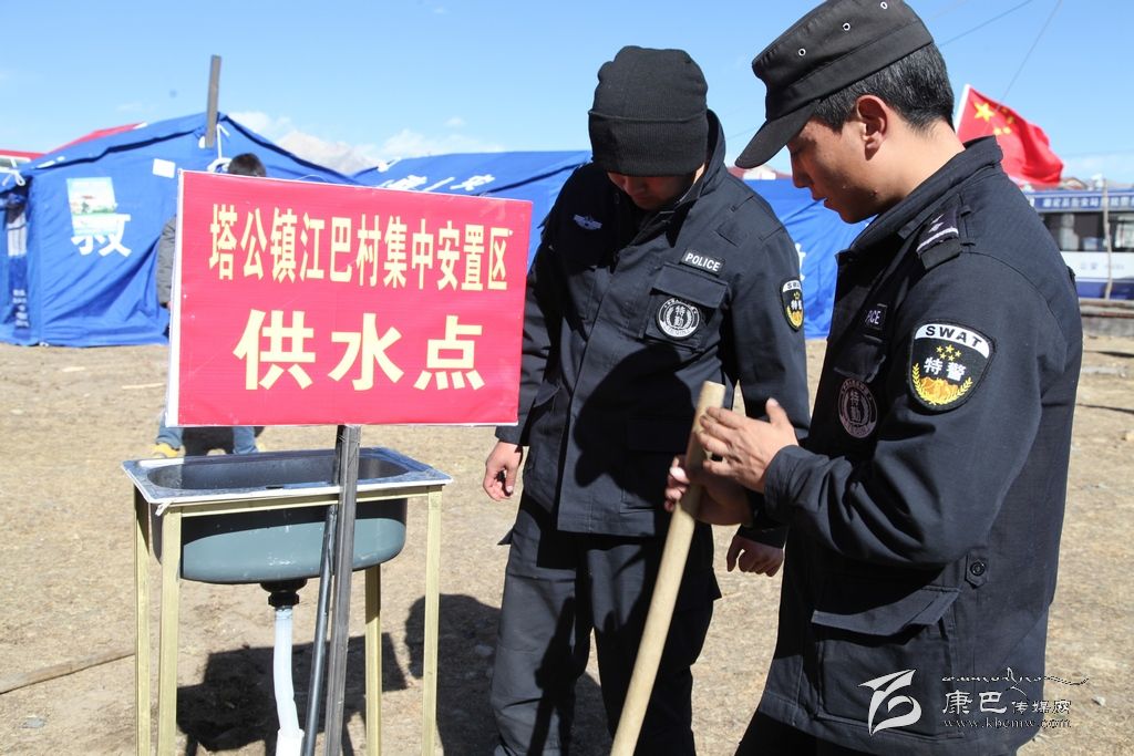 走進(jìn)江巴牧民新村安置點(diǎn)我們看見幾位管道工人和特警正在忙碌著挖埋管道,管道的旁邊豎起了一個(gè)紅色的牌子,上面寫著塔公鎮(zhèn)江巴村集中安置區(qū)供水點(diǎn),據(jù)挖埋管道的人員介紹,按照康定縣水務(wù)局的要求,安置區(qū)供水點(diǎn)經(jīng)過兩天的時(shí)間總共建成了兩處,康定縣水務(wù)局在災(zāi)區(qū)明確方式,分類援助,主要從水源、管道、集中供水點(diǎn)和水質(zhì)保障四個(gè)環(huán)節(jié)解決供水問題。保證了大批災(zāi)區(qū)群眾和救援人員的生活用水,有效預(yù)防了疫情的發(fā)生。