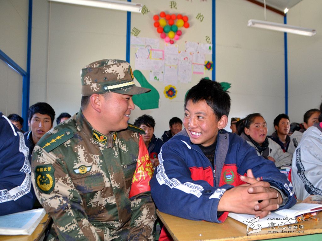 為使康定“11.22”地震災(zāi)區(qū)學(xué)生盡快走出心理陰影,樹立勇敢面對災(zāi)難的信心,連日來,武警四川總隊(duì)二支隊(duì)抗震救災(zāi)官兵主動與木雅祖慶學(xué)校對接,擔(dān)負(fù)起該校的“校外輔導(dǎo)員”職責(zé),主要在學(xué)生中開展愛國教育、軍訓(xùn)、心理輔導(dǎo)和一對一功課輔導(dǎo)等活動。圖為12月10日上午,武警官兵利用學(xué)生自習(xí)時(shí)間和學(xué)生們開展活動。(于傳濤 攝影報(bào)道)