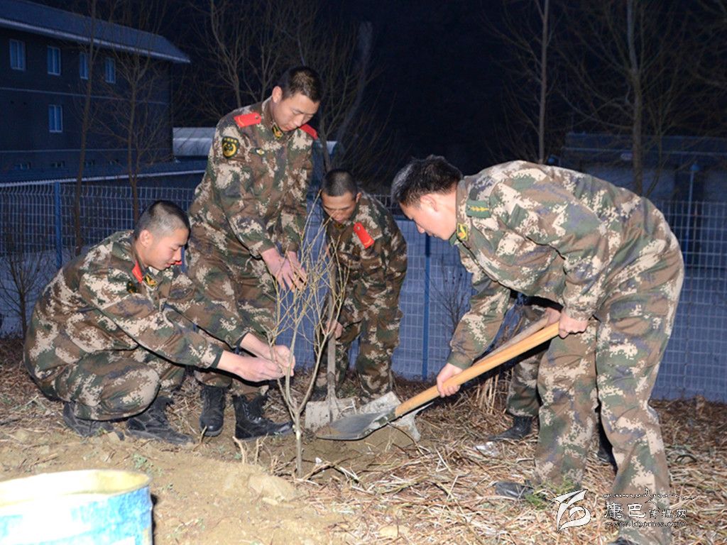 又到一年植樹時,3月12日至13日,武警四川總隊(duì)二支隊(duì)官兵利用訓(xùn)練間隙,在營區(qū)周圍的荒坡上刨石坑、培細(xì)土,種下了柳樹、沙棗、白楊等耐寒耐旱樹種。駐扎多年來,官兵用勤勞的雙手為雜草叢生的荒山栽下了勃勃生機(jī),部隊(duì)營區(qū)及周圍由官兵栽植的樹木已將荒山野嶺變?yōu)榍嗌奖處X。 (于傳濤 謝偉 攝影報(bào)道)