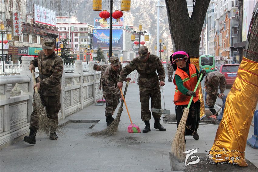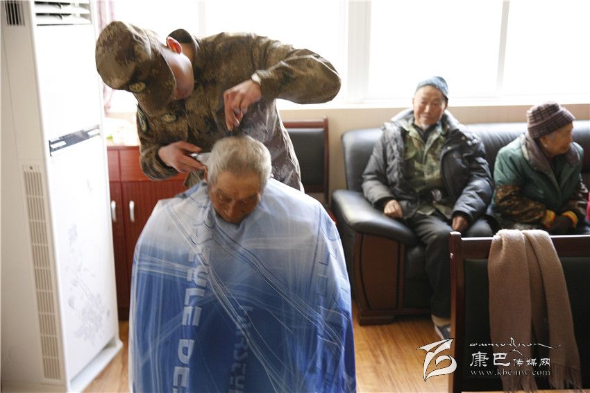 情歌廣場,官兵們鏟除冰雪,除去塵土垃圾,留下一片潔凈美好;福利院里,官兵們?yōu)槔先藵{洗衣物、打掃衛(wèi)生、理發(fā)洗頭,忙得不亦樂乎。幾位女兵還專門為老人們送去了自編自演的節(jié)目,這個“一家人”的溫馨聚會,讓老人們倍感高興、倍感溫暖。而此刻,遠在道孚的分區(qū)部隊某營官兵的愛民助民活動也進行的如火如荼。