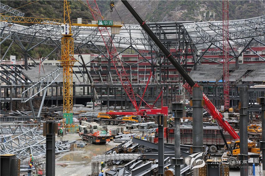 從規(guī)劃上看,高大上的新北門(mén)體育場(chǎng)堪稱甘孜州的“鳥(niǎo)巢”。由四川省第十三建筑公司承建的康定北門(mén)體育場(chǎng)改造工程,工程總投資2.4億元。截止目前,已完成投資1.4億元。停車場(chǎng)和看臺(tái)已初具規(guī)模;95%的鋼材已運(yùn)達(dá)建設(shè)現(xiàn)場(chǎng)。據(jù)工程負(fù)責(zé)人介紹,北門(mén)體育場(chǎng)改造工程每天有300多人在施工,預(yù)計(jì)7月初大部分工程可以完工。