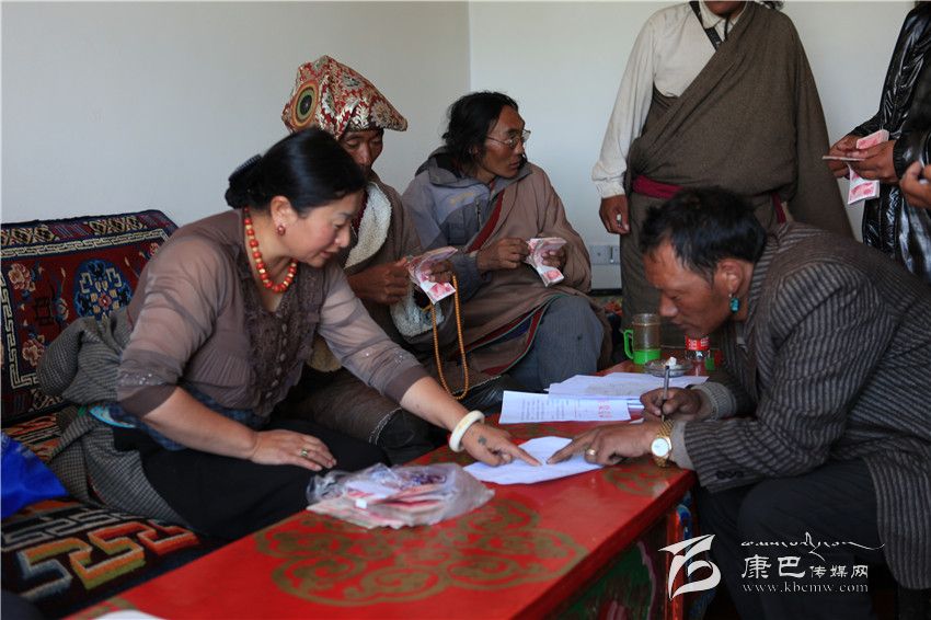 色達(dá)縣基層干部現(xiàn)場兌現(xiàn)易地扶貧搬遷補(bǔ)助款。
