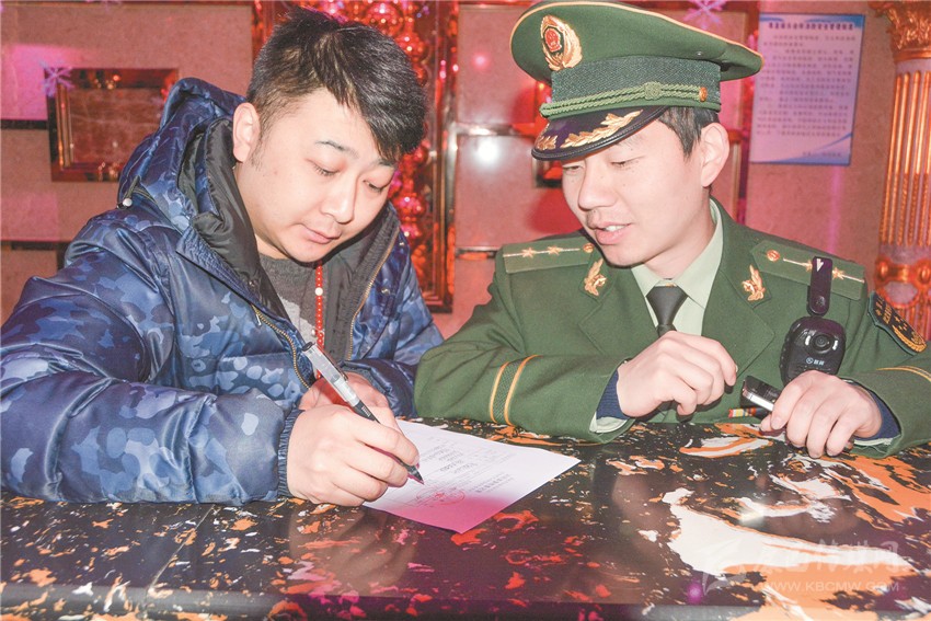 與店主簽訂消防安全責(zé)任書(shū)。