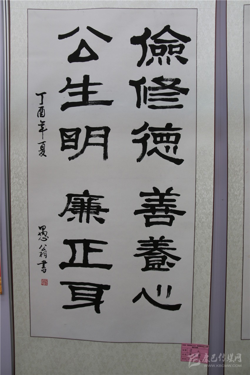 本網(wǎng)訊(記者 宋志勇 文/圖)“儉修德,善養(yǎng)心;公生明,廉正身。”“當(dāng)不住今天的誘惑將失去明天的幸福。”“清廉”..........。隸書(shū)、行草、草書(shū)等一幅幅書(shū)法作品行云流水、飛揚(yáng)灑脫。這是9月15日,由州紀(jì)委、州委宣傳部共同主辦,州直工委、州文明辦協(xié)辦的我州“喜迎黨的十九大?弘揚(yáng)清風(fēng)正氣”主題廉政書(shū)畫(huà)展在康定劇場(chǎng)開(kāi)展時(shí),參與此次活動(dòng)的作者以各自的方式創(chuàng)作出一件件主題鮮明的精美力作,既增強(qiáng)全社會(huì)反腐倡廉意識(shí),也營(yíng)造各族人民喜迎黨的十九大的濃厚氛圍。