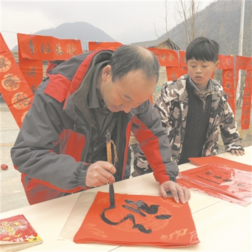 書(shū)法家為群眾寫(xiě)春聯(lián)。