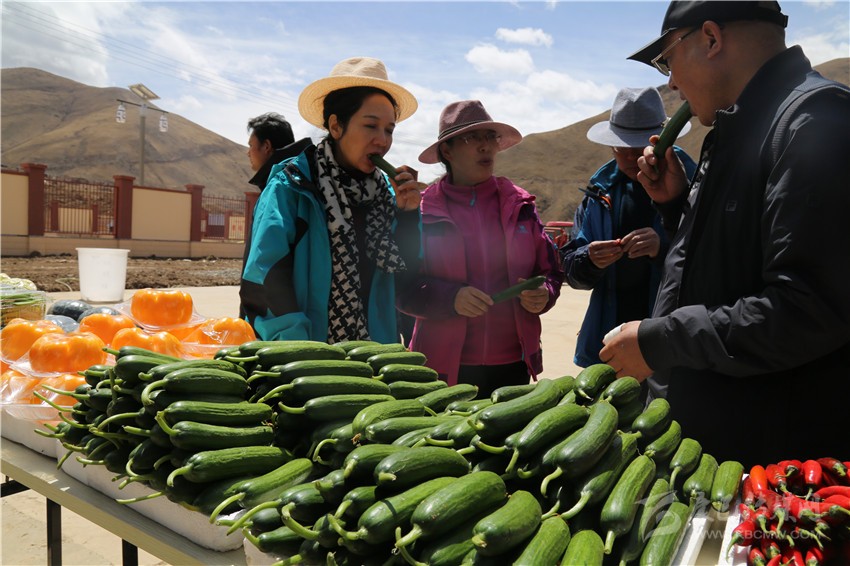 德格中扎科農(nóng)業(yè)產(chǎn)業(yè)園有機蔬果引得參觀考察者競相品嘗。