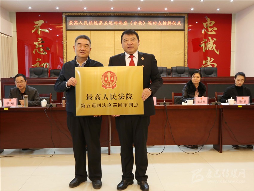 本網(wǎng)訊 11月13日,最高人民法院第五巡回法庭(甘孜)巡回審判點(diǎn)授牌儀式在甘孜州中級(jí)人民法院舉行,此次在四川設(shè)立兩個(gè)巡回點(diǎn),州中級(jí)人民法院是授牌點(diǎn)之一。最高人民法院第五巡回法庭分黨組成員、副庭長汪國獻(xiàn)為該院授牌并在儀式上作講話,甘孜州中級(jí)人民法院黨組書記、代理院長付寶接牌并作相關(guān)工作匯報(bào)。
