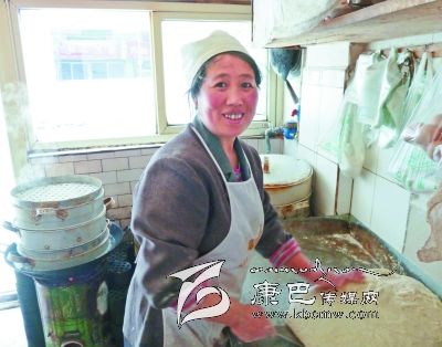 姜瓊芳是雅安漢源人,十幾年前就和親戚一起來(lái)康定打工,她賣(mài)過(guò)菜、打過(guò)零工,2010年,有了一點(diǎn)積蓄的姜瓊芳開(kāi)起了一家小吃店,專(zhuān)賣(mài)早餐,包子、花卷、饅頭、酥油茶、稀飯,雖是小生意,可也做得紅紅火火。因?yàn)榻偡紴槿藷崆?、?ài)幫忙,做的各類(lèi)早點(diǎn)味道好、分量足,所以每天早早地就賣(mài)完了,還有很多老顧客早上就要來(lái)訂購(gòu)還沒(méi)做好的包子、饅頭。