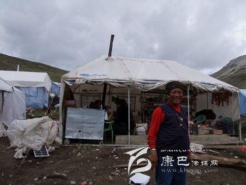 由于挖蟲草的時(shí)間前后近2個(gè)月,所以采挖蟲草的人往往都不回家,而是在山坳靠水的地方扎帳篷宿營(yíng)。在蟲草采挖點(diǎn),我們看到很多這樣的宿營(yíng)地,或三、五頂帳篷扎堆,或三、五十頂帳篷聚居。在理塘縣曲登鄉(xiāng)阿加隆洼這個(gè)大的聚居地上記者看到上千頂帳篷整齊有序地排成行,不僅能看到帳篷外的煤氣罐和處處升起的炊煙,還能看到供娛樂和消遣用的臺(tái)球桌和能采購(gòu)到日常生活用品的小商店,甚至還能看到升起的紅旗。聚居區(qū)如此龐大,其實(shí)并不都是采挖人。這其中還混雜著許多蟲草的收購(gòu)人和兜售人,還有各種到這里來做生意賺錢的人,如一個(gè)小集鎮(zhèn)般熱鬧。