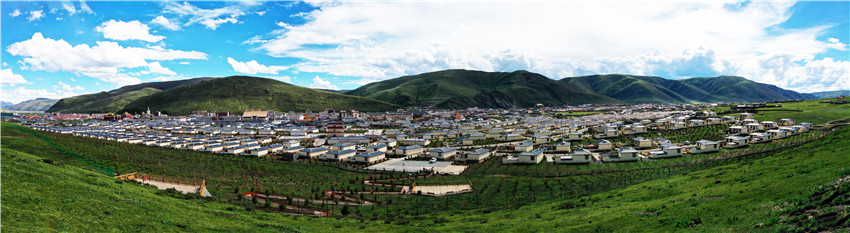 色達(dá)縣全境海拔大都在4000米以上,長冬無夏,年平均溫度-5℃,大氣含氧量不及低海拔地區(qū)的60%。為改善貧困群眾的生活條件,2017年,色達(dá)縣啟動(dòng)了易地扶貧搬遷集中安置,對(duì)口幫扶的溫江區(qū)投入資金4775萬元,又專門追加320萬元用于社區(qū)及周邊環(huán)境綠化。