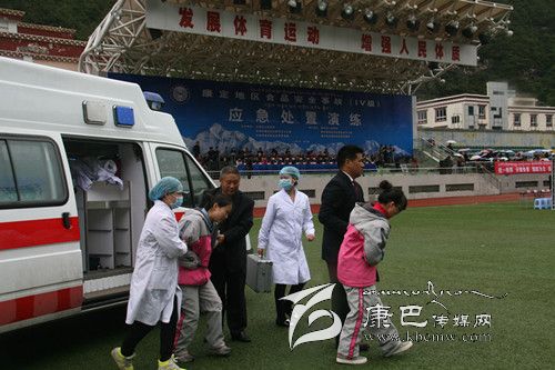 演練現(xiàn)場,工作人員在北門廣場搭起了學校醫(yī)務(wù)室、學校食堂、縣醫(yī)院、留樣柜、農(nóng)貿(mào)市場、應(yīng)急指揮部等情景模擬臺,3名身穿校服的孩子坐在“校醫(yī)務(wù)室”,有的捂著肚子,有的托著腦袋,表情“痛苦”,正焦急地等待“救援”。演練過程中,學校緊急啟動學校食品安全事故應(yīng)急預(yù)案,第一時間將發(fā)病學生送往醫(yī)院,并通知學生家長。同時向縣教育局、縣食品藥品監(jiān)督管理局報告。相關(guān)職能部門獲知該信息后,迅速趕赴現(xiàn)場,成立應(yīng)急指揮中心。在指揮部的統(tǒng)一協(xié)調(diào)指揮下,康定縣食品安全委員會成員單位領(lǐng)導及食品安全辦成員按照職責分工,分別組織開展應(yīng)急救援和事故調(diào)查處置等工作。事故調(diào)查處置貫穿醫(yī)療救治、生產(chǎn)加工、市場流通、餐飲等重要食品監(jiān)管環(huán)節(jié)。由于指揮得當,措施得力,處置及時,有效控制了“中毒事件”的蔓延和擴大。應(yīng)急演練達到了預(yù)期效果。