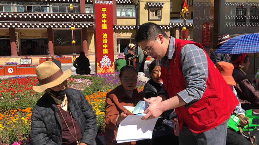 工作人員正在為群眾講解垃圾分類知識。