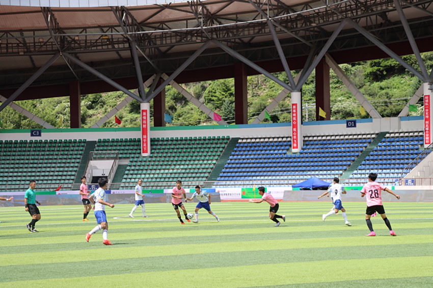 15時,第二場比賽由A組的青海黃南隊對陣四川甘孜隊。上半場比賽雙方互有來往,傷停補時3分鐘,最后以0∶0的方式結束。進入中場休息時間,各隊重新做好戰(zhàn)術調(diào)整。