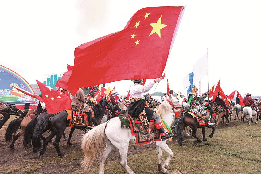 8月11日,色達縣扎青塘草原,沙場點兵,搭起連營帳,作為“‘福地色達·金馬之邀’游牧文化遺產體驗季”重頭戲的賽馬活動讓人人沸騰。