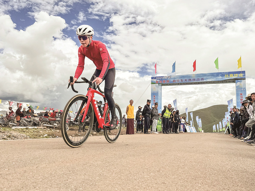 2023年8月11日,作為“福地色達·金馬之邀”草原游牧文化遺產體驗季系列活動之一的金馬草原自行車天路挑戰(zhàn)賽在格薩爾文化藝術中心鳴槍開賽。100多名來自全國各地的自行車專業(yè)運動員及自行車愛好者齊聚福地色達,共赴一場別開生面的體育盛宴。 一位參賽選手激動地說:“我是從湖北武漢過來的,第一次參加海拔這么高的比賽,感覺很好、很棒。一路風景超美,美呆了!如果還有這樣的比賽,我一定會再來的!”