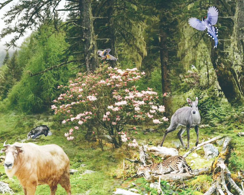 同時(shí),全館尤其注重展覽語(yǔ)言的可視化轉(zhuǎn)化,像百余種動(dòng)植物標(biāo)本通過(guò)或?qū)嵨锘蚍抡婺P汀⒒蚩茖W(xué)手繪插圖或科普互動(dòng)展項(xiàng)的方式直觀、生動(dòng)、趣味地進(jìn)行展示。總之,貢嘎山可望不可及的“神性一面”在櫥窗景深中可見(jiàn),“貢嘎精靈”的“生命密碼”在仿真生境中揭示,漫長(zhǎng)地史演化進(jìn)程在巖石標(biāo)本中顯現(xiàn);更為重要的是,數(shù)十年的保護(hù)管理成果斐然并貫穿全館。