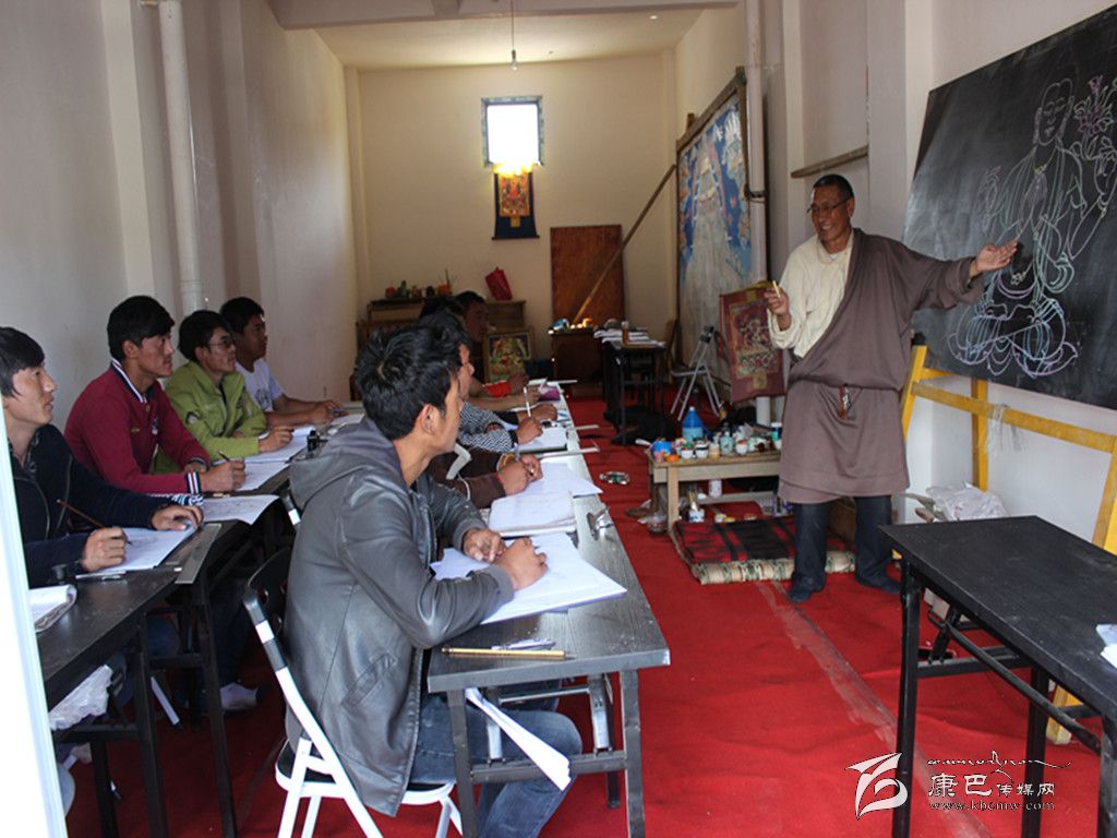 走進呷絨多吉家中,這位和藹可親的老人正聲情并茂地給二十幾個青少年講唐卡的繪畫技巧。廚房里,一個年輕婦女正忙碌著準備午餐,分量足夠二十幾個人吃。