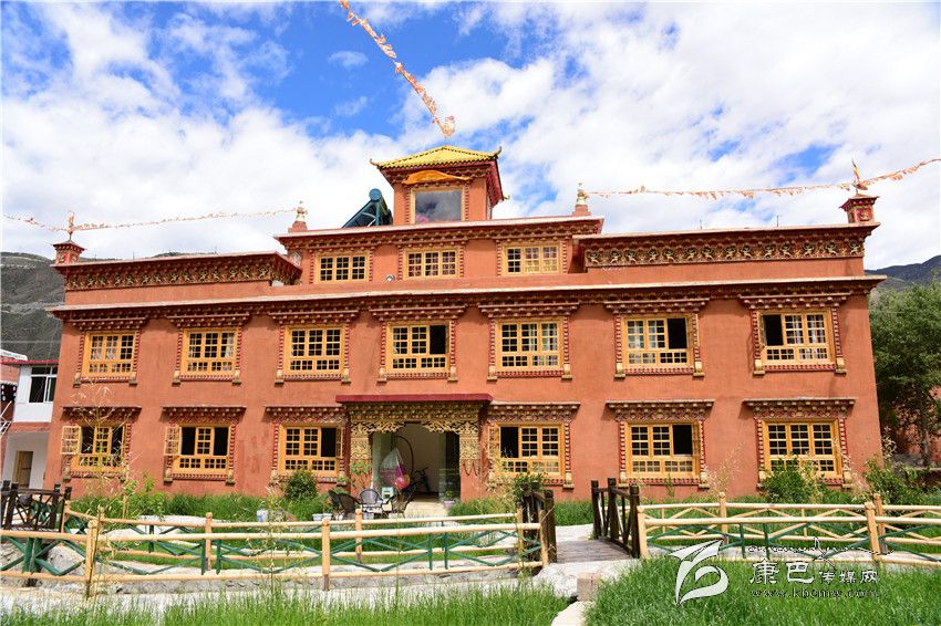跟朗杰一樣,獨角龍村農民多吉曲登也曾去香格里拉、稻城等地考察,回來后也搞起了民居接待,起名“德噶林”。德噶林是在原有藏房的基礎上進行特色裝修而成,既保存了巴塘紅藏房原本的構架,又融入了一些現代建筑元素。民居內部的灶臺、茶桶、水缸等裝飾無不凸顯著巴塘深厚的農耕文化。頗具現代氣息的衛(wèi)生間、咖啡廳等更是緊跟時代步伐。筆者采訪時恰遇一位前往西藏旅游的旅客辦理入住手續(xù),他告訴我們,在網上看到這家民居接待的信息時,覺得很有特色,價格也適中,就選擇了這里。還說如果原路返回的話,住巴塘仍會選擇住這里。