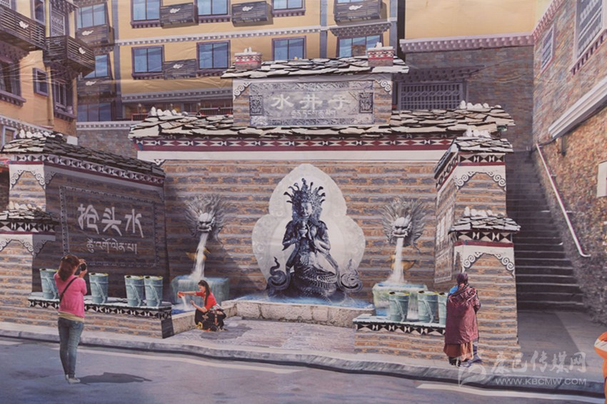 在現(xiàn)場,“水井子”原址已被圍擋封閉施工。根據(jù)設(shè)計(jì),此次提升將融入“搶頭水”民族習(xí)俗,并結(jié)合互動性祈福、見證愛情的表現(xiàn)手法旨在將水井子打造成為康定城中的體驗(yàn)式民俗景點(diǎn)。從外觀上看,內(nèi)街水井依然采用開放式外墻,正中神龕放置藏族水龍王塑像,兩邊塑造龍頭,以“二龍噴水”景觀作為新的出水方式,下方池邊則安放傳統(tǒng)背水姑娘雕塑。