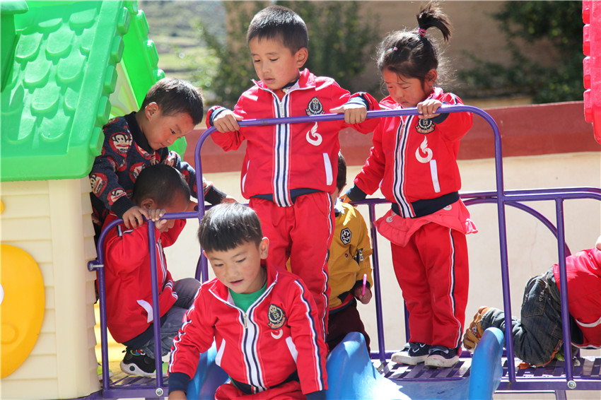 理塘縣濯桑鄉(xiāng)下汝村五歲的格絨澤西,去年9月就讀于下汝村幼兒園,現(xiàn)在簡單的漢字、拼音、藏文字母能認(rèn)得到,從1可以數(shù)到20,唱兒歌跳藏舞特別開心,這讓父親曲云十分高興,不然像以前只好在家中玩?;驇У椒拍恋牟輬?、勞作的地里。每次父親帶她上縣城,格絨澤西都十分羨慕城里的孩子能背上小書包上幼兒園。“真沒想到,我家的小孩在村里就能讀幼兒園,還學(xué)到了知識。”曲云高興地說。