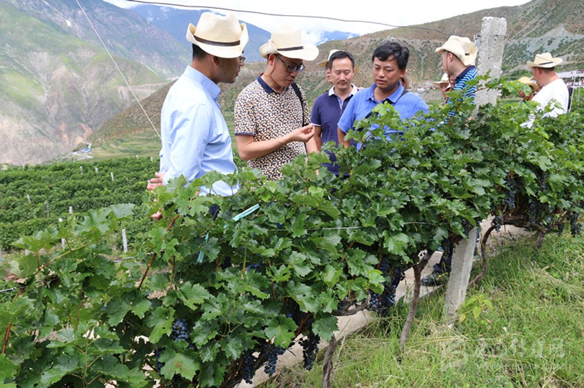“我們通過整合各類涉農(nóng)資金,足額兌現(xiàn)前三年無掛果期補(bǔ)助補(bǔ)貼,讓村民們熬過艱難的無掛果期。如今,無論在因都壩的荒坡上,還是在金沙江邊的荒地里,我們都種滿了葡萄,而且大部分開始掛果,老百姓們已經(jīng)收獲了實際收益?!卑⒗杉拥慕榻B說。