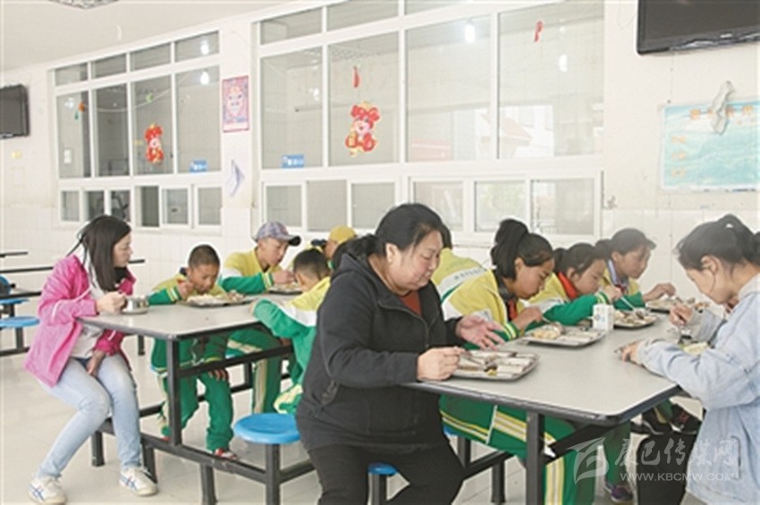 唐關蓉、馮秀玲兩位老師和學生一起用餐。