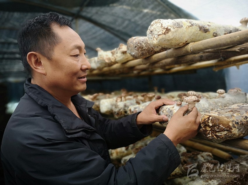 降措查看香菇生長情況。