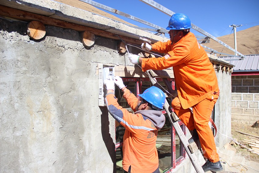 理塘公司為村戈鄉(xiāng)12戶貧困戶及五保戶安裝新電表及布線。
