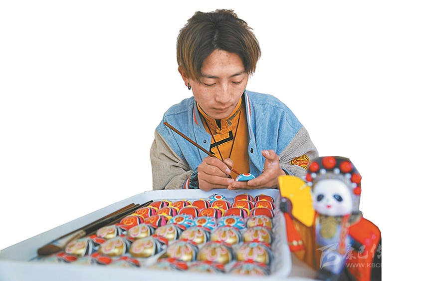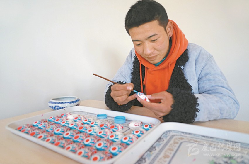 本著自主自愿的原則,教學班結束后,65名藏族青年主動加入扶貧彩繪實訓班,成為項目的第一批學員?!皩嵱柶陂g不需要交任何費用,還包吃住。我對畫京劇臉譜很有興趣,我們第一個月學習繪畫基本功,第二個月開始,根據(jù)成品質量,就可以計件得酬勞,學習期間我每月能掙500多元。”邛批說。