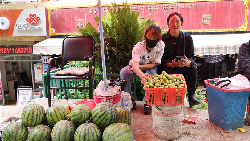 6月27日早晨8點,位于得榮縣城內的太陽谷鎮(zhèn)平安農貿市場熱鬧非凡,得榮縣特色農產品銷售點23個具有民族特色的攤點臨街一字擺開,琳瑯滿目的地方特產吸引著大家的目光,問候聲、叫賣聲、詢價聲,聲聲入耳;買到心儀商品的愜意、賣上好價格的喜悅、了解商品行情的滿足,相互交織,充滿人間煙火氣。