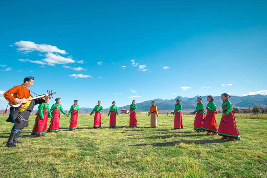 澤仁彭措是位“半路出家”的鄉(xiāng)村音樂教師?!靶r候就對音樂特別感興趣,但那時候家里沒條件,很難有機會系統(tǒng)地學習音樂知識?!遍L大后,澤仁彭措成為一名教師。工作之余,他始終保持著對音樂的熱愛,自學了札木聶和弦子等樂器。