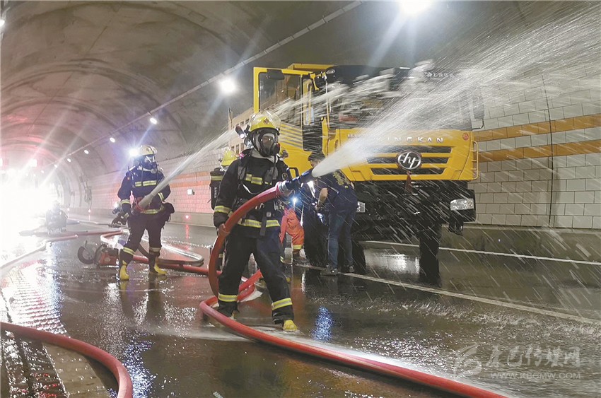 指揮中心按照《隧道內(nèi)突發(fā)公共事件應(yīng)急預(yù)案》,賡即啟動先期預(yù)警并進行處置,利用隧道應(yīng)急廣播系統(tǒng),引導(dǎo)司乘人員組織自救;協(xié)調(diào)轄區(qū)消防、醫(yī)療衛(wèi)生、高速公安、高速交通執(zhí)法、路政管護等力量,攜帶相應(yīng)設(shè)施設(shè)備立即趕赴現(xiàn)場實施救援,并對高速公路進行遠端分流和管控。