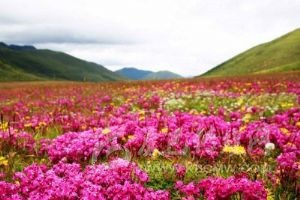 木雅圣地景區(qū)坐落于康定折多山西側(cè)的“木雅辛康”,是一座以民俗風(fēng)情與自然風(fēng)光相結(jié)合的,以體現(xiàn)藏族木雅文化為主題的專題旅游區(qū)。擁有雪山、草原、花海、河流、湖泊和木雅藏族民俗文化等眾多旅游景觀,共有5個(gè)主要景點(diǎn),“花海尋蹤”是當(dāng)年木雅公主很愛(ài)游玩之地,也是整個(gè)景區(qū)花開(kāi)得很早很茂盛的地方?!拌笠羲透!笔悄狙诺貐^(qū)享有盛名的藏傳佛教寺廟?!疤旖缒粮琛笔悄狙艊?guó)傳統(tǒng)的冬季放牧之地,這里牧草極為豐富。“佛佑木雅”是一個(gè)用經(jīng)幡制作而成的釋迦牟尼佛像。“群峰圍屏”是護(hù)衛(wèi)木雅國(guó)的一道天然屏障。