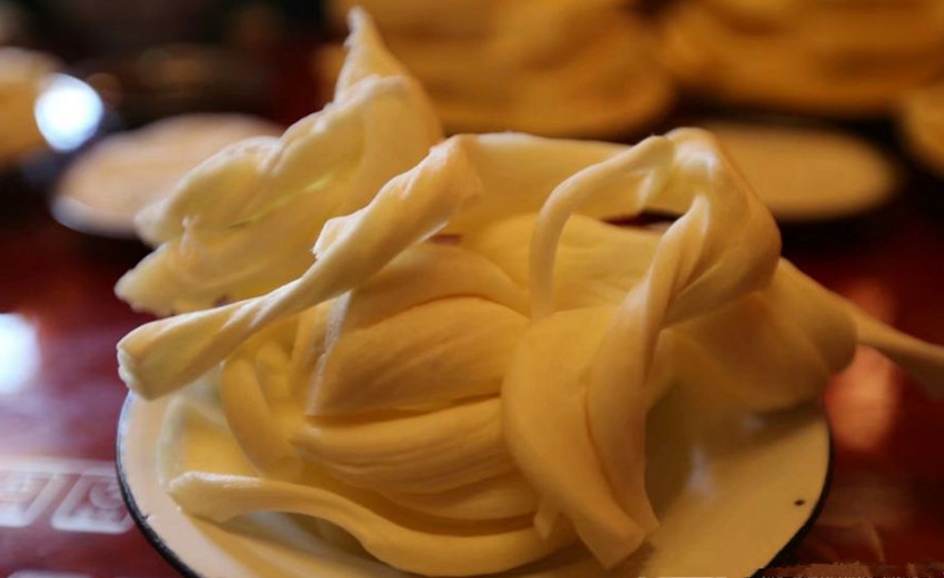 酥油古稱醍醐,元代才開(kāi)始叫酥油。元代宮廷食醫(yī)思慧在《飲膳正要》中記述了酥油的提取方法:“取凈奶子,不住手用阿赤打,取浮油者為思馬哥油,今亦云曰酥油?!蔽闹小鞍⒊唷笔翘崛∷钟偷哪酒鳌L崛∷钟陀袑iT的酥油桶,桶里有一個(gè)連桿木柄,倒上牛奶,蓋上桶蓋后,連續(xù)上下抽動(dòng)連桿木柄數(shù)百上千次,黃澄澄的酥油塊就全部浮在上面了。把酥油塊用手捏成坨,擠去水份,丟進(jìn)清水里泡一會(huì)兒,就可以食用了?,F(xiàn)在牧區(qū)打酥油普遍用奶油分離器,既快又省。