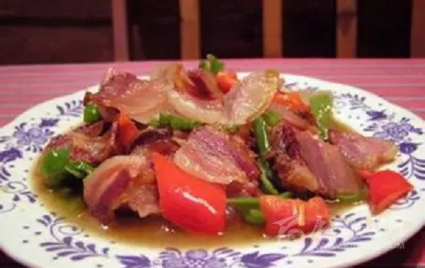 嘉 絨語(yǔ)稱“大古兒”,與香豬腿一樣,豬膘是丹巴的土特產(chǎn)之一。境內(nèi)居住在高山半高山一帶的藏羌群眾家家做豬膘。豬膘就是豬的肥膘做成的,一頭豬砍去四個(gè)“肘 肋”肉,去頭和項(xiàng)圈后,余下的從背梁上剖開(kāi),做成兩扇豬膘,在一鍋開(kāi)水里煮成半熟,取出后,用木棍將其撐開(kāi)弄直,在露天里凍兩天晚上,待基本成型后掛曬晾干。一般每戶人家在藏房的二樓有固定的房間放肉,在房間內(nèi)搭設(shè)一個(gè)架子,把豬膘平放在架子上,一扇重一扇。家庭富足的每年能積存一定數(shù)量的豬膘,幾年后, 已堆滿一個(gè)房間。豬膘的食用方法各個(gè)地方有所不同,境內(nèi)邊耳鄉(xiāng)一帶一般吃生豬膘,每當(dāng)寨子里有人家蓋房、辦喜事,會(huì)提前做很多火燒子饃饃,切很多塊狀的豬膘;當(dāng)天幫忙的一人發(fā)一個(gè)火燒子饃饃、一塊豬膘肉;豬膘一般不去毛,食用的時(shí)候在滾燙的茶水里浸泡一會(huì)兒,然后用刀將皮毛去掉,然后和著饃饃食用。小金溝 一帶有用豬膘做“墩子”肉(又稱“坨坨肉”)的習(xí)俗,“墩子”肉是“九大碗”中的主菜,其做法是把豬膘切成塊,放上佐料,用文火燉耙,然后一碗一碗舀上桌食用,“登子”肉燉的時(shí)間越長(zhǎng)就越香。境內(nèi)其他一些地方普遍把豬膘煮熟切成片和著饃饃食用。
