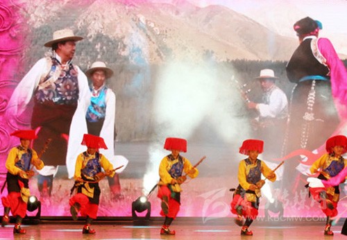 酒歌,藏語稱“羌諧”,流行于我州各縣。除主要幾種曲調(diào)普遍傳唱外,各地還有各自的唱法。“羌諧”是在重大節(jié)日、迎接貴賓、親友歡聚時(shí),興之所至,親友之間相互敬酒,對(duì)待貴賓則高舉酒杯以誠相敬。還有一種只唱不舞的酒歌,即“央金道道”。曲調(diào)優(yōu)美,音韻悠長。