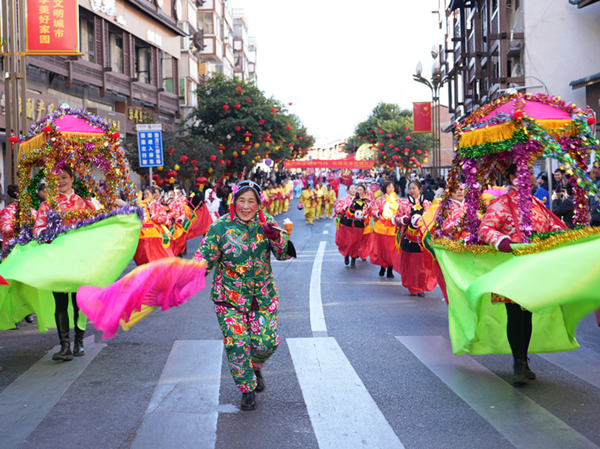 隨著悠揚(yáng)的弦胡聲響起,備受期待的“千人弦子鍋莊”震撼上演。來(lái)自夏邛鎮(zhèn)、地巫鎮(zhèn)、竹巴龍鄉(xiāng)等多個(gè)鄉(xiāng)鎮(zhèn)的群眾演員們輪番上場(chǎng),他們身著巴塘傳統(tǒng)民族服飾,踩著節(jié)拍不斷律動(dòng),含胸、顫膝、點(diǎn)踢、三步一撩,一步一靠,婀娜輕盈如行云流水;半圓、橢圓、長(zhǎng)圓與肢體撩動(dòng)飛舞,一個(gè)個(gè)深情的圓意蘊(yùn)廣遠(yuǎn),體現(xiàn)著天人合一的動(dòng)態(tài)美。不少游客群眾被吸引加入其中,一圈圈、一層層,大家縱情歌舞、歡騰跳躍,沉浸在非遺盛況中。在觀看演出后,來(lái)自河南的游客劉女士?jī)?nèi)心十分雀躍:“我今天專門(mén)過(guò)來(lái)看表演,現(xiàn)場(chǎng)非常熱鬧,每一個(gè)節(jié)目都非常精彩,極具民族特色和觀賞性,讓我大飽眼福。民族的就是世界的,我們國(guó)家有這么多優(yōu)秀燦爛的民族文化,這是我們的驕傲,要更好地傳承和發(fā)揚(yáng)好。今天的活動(dòng)非常有意義,所有參演人員十分投入、熱情滿滿,從載歌載舞中看到了巴塘群眾對(duì)幸福生活的表達(dá),感受到了巴塘濃濃的年味。”一曲接一曲,現(xiàn)場(chǎng)歌舞如潮,歡呼聲叫好聲此起彼伏,匯成一片歡樂(lè)的海洋。此次弦子鍋莊展演在保持傳統(tǒng)弦子鍋莊舞曲風(fēng)格的基礎(chǔ)上,還創(chuàng)造性地融入了民族團(tuán)結(jié)、群眾生活等內(nèi)容,用鄉(xiāng)音唱出群眾心中的喜悅,用舞蹈跳出對(duì)美好生活的向往。在傳承保護(hù)民族文化的同時(shí),又賦予弦子鍋莊舞新時(shí)代文化內(nèi)涵,充分展現(xiàn)巴塘中國(guó)民間弦子之鄉(xiāng)深厚的歷史文化和多彩多姿的民俗風(fēng)情。