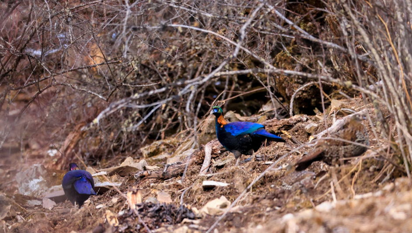 “早上6點多,海拔三千多米,氣溫零下堅持守候,突然出現(xiàn)就像一道彩虹,它們從頭頂飛過,連翅膀劃破空氣的聲音都聽得清清楚楚……”3月10日,朱任超向記者講述了此次拍攝到綠尾虹雉的諸多細(xì)節(jié)……