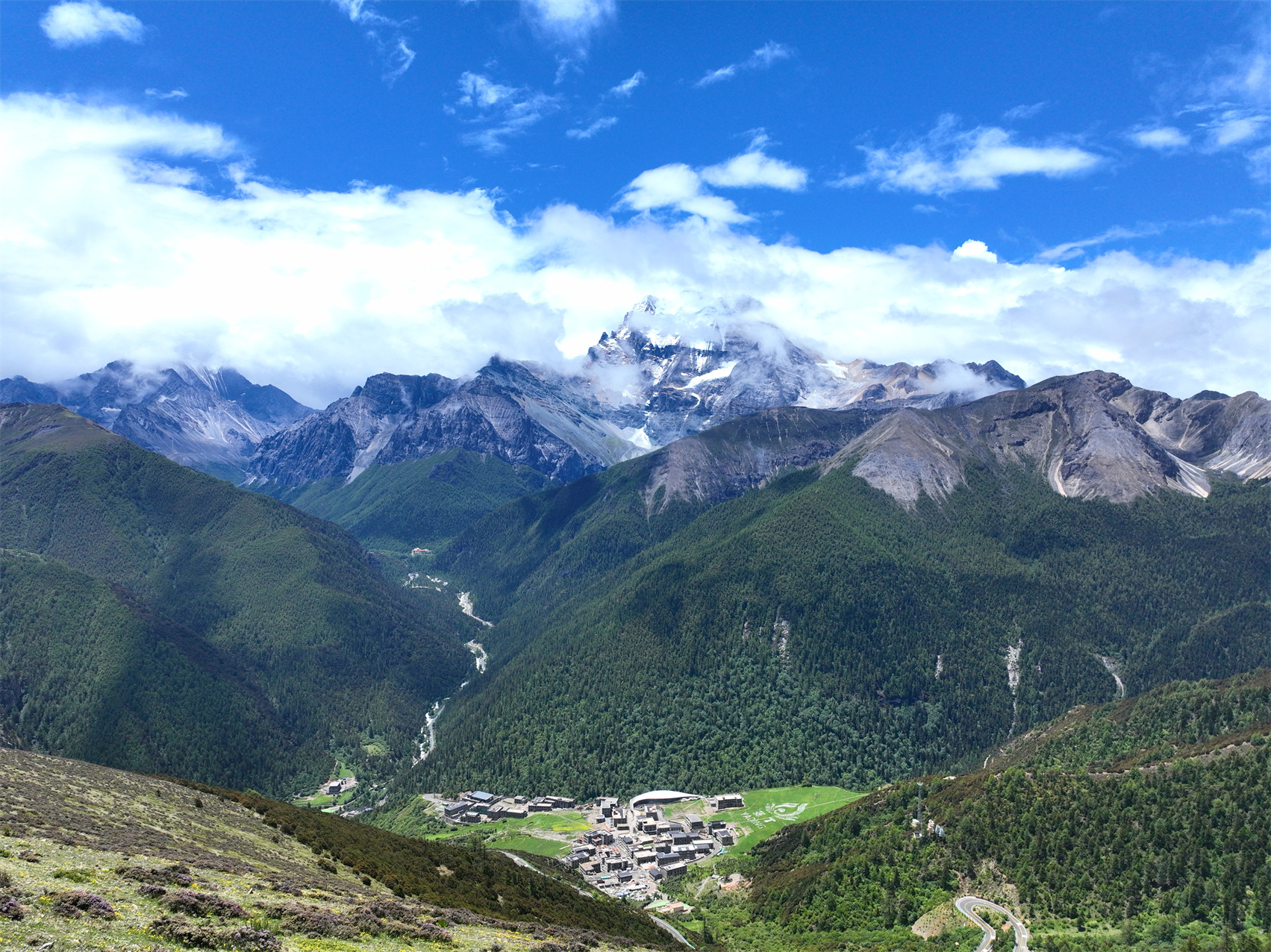 川西高原的氣候高深莫測。7月,稻城縣的夏季才姍姍來遲。藍(lán)天白云之下,牛羊悠然自得;巍峨雪山之巔,雄鷹展翅翱翔;蒼茫草原之上,野花肆意絢爛……仙乃日、央邁勇、夏諾多吉三座神山化身天地間最偉岸的守護者,守護著層林、遠(yuǎn)山、藍(lán)天、白云、飛鳥,美得不可方物的一切。