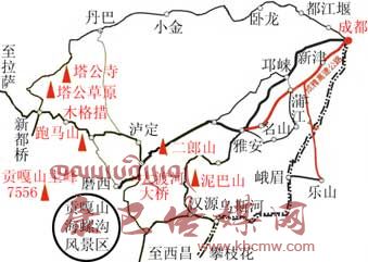 成都 至 雅安 140公里 二郎山隧道全長 4公里 二郎山隧道西口 至 甘谷地 16公里 甘谷地 至 磨西鎮(zhèn) 38公里 磨西鎮(zhèn) 至 一號營地 15公里 一號營地 至 二號營地 8公里 二號營地 至 三號營地 7.5公里 三號營地 至 觀景臺 4.5公里 甘谷地 至 瀘定 13公里 磨西 至 康定(經(jīng)雅家埂) 76公里