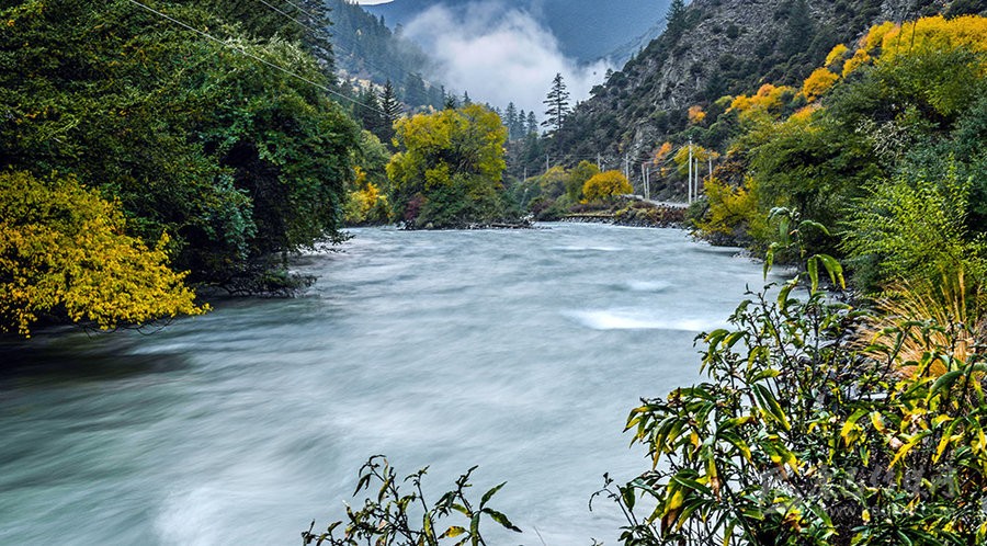 源于康定縣境西北與道孚縣交界處的柯哲德沼澤地帶,為雅礱江的一級(jí)支流,至普沙絨鄉(xiāng)(宜代)折向西注入雅礱江。進(jìn)入森林公園后屬高山峽谷地帶,相對高差1200米,河流切割深,地形陡峻,全長30.3公里,平均寬度為30米,最寬處達(dá)80米左右,平均水深5米,最深處可達(dá)30余米,落差2511米,多年平均流量3.47立方米/秒,枯水期僅0.7立方米/秒。兩岸次生天然蒼茫,環(huán)境十分清幽。