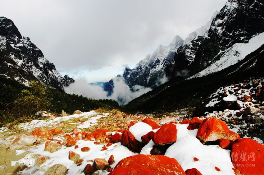 燕子溝最精華的景觀是紅石灘,此處為亞洲最大的紅石灘。石頭上布滿的紅色物質(zhì),是一種微生物,在高山特有的生態(tài)環(huán)境內(nèi)得以繁衍,構(gòu)成生命與歷史相融共存的奇特景觀。因為沙灘里的石頭都長了一層紅色的苔蘚,就好象沙灘里的石頭都穿上了喜慶的紅衣,使得燕子溝成了顏色的世界。據(jù)說只有在空氣質(zhì)量很好的情況下,這種苔蘚才能夠生存,曾經(jīng)有研究院的科學(xué)家為將這種石頭帶出去研究,結(jié)果剛下飛機,發(fā)現(xiàn)石頭上的紅色退了,因為空氣質(zhì)量不好,導(dǎo)致石頭上的苔蘚無法生存。